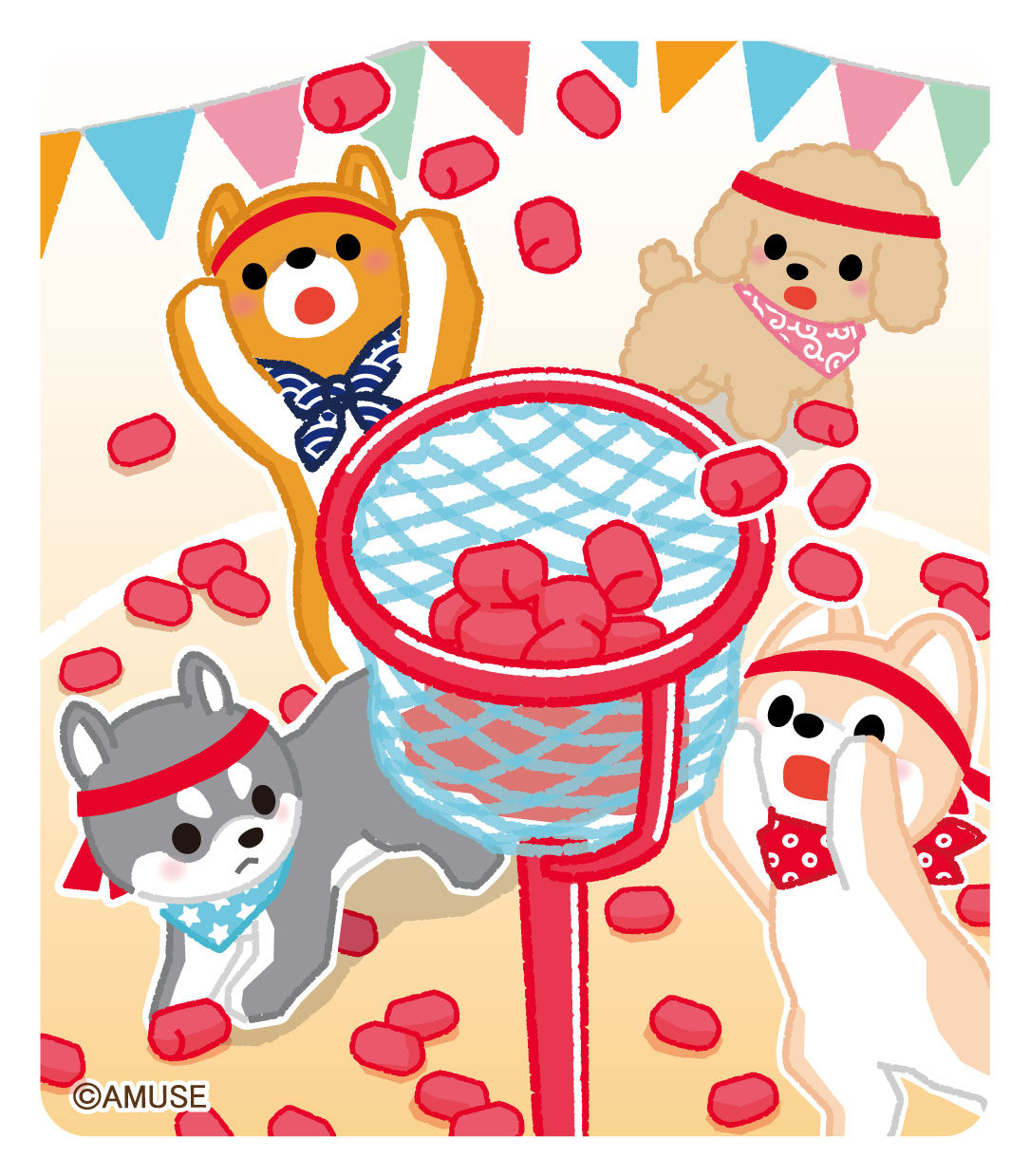 町内運動会で玉入れに